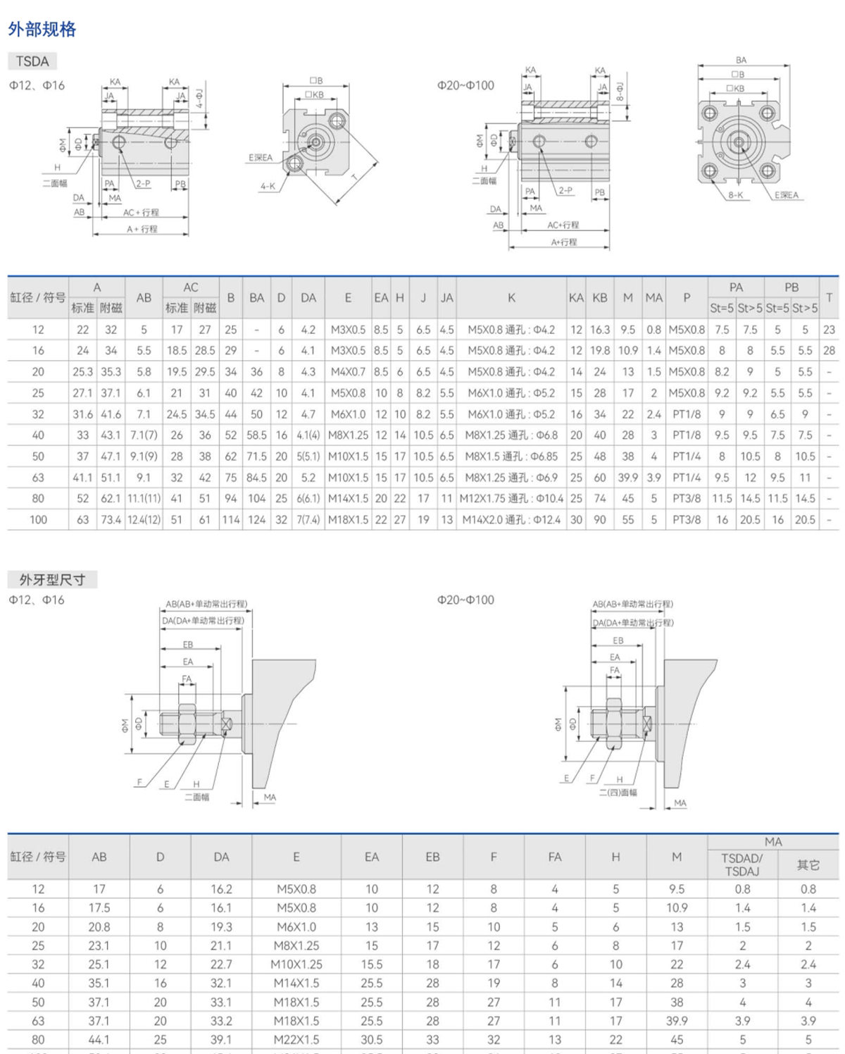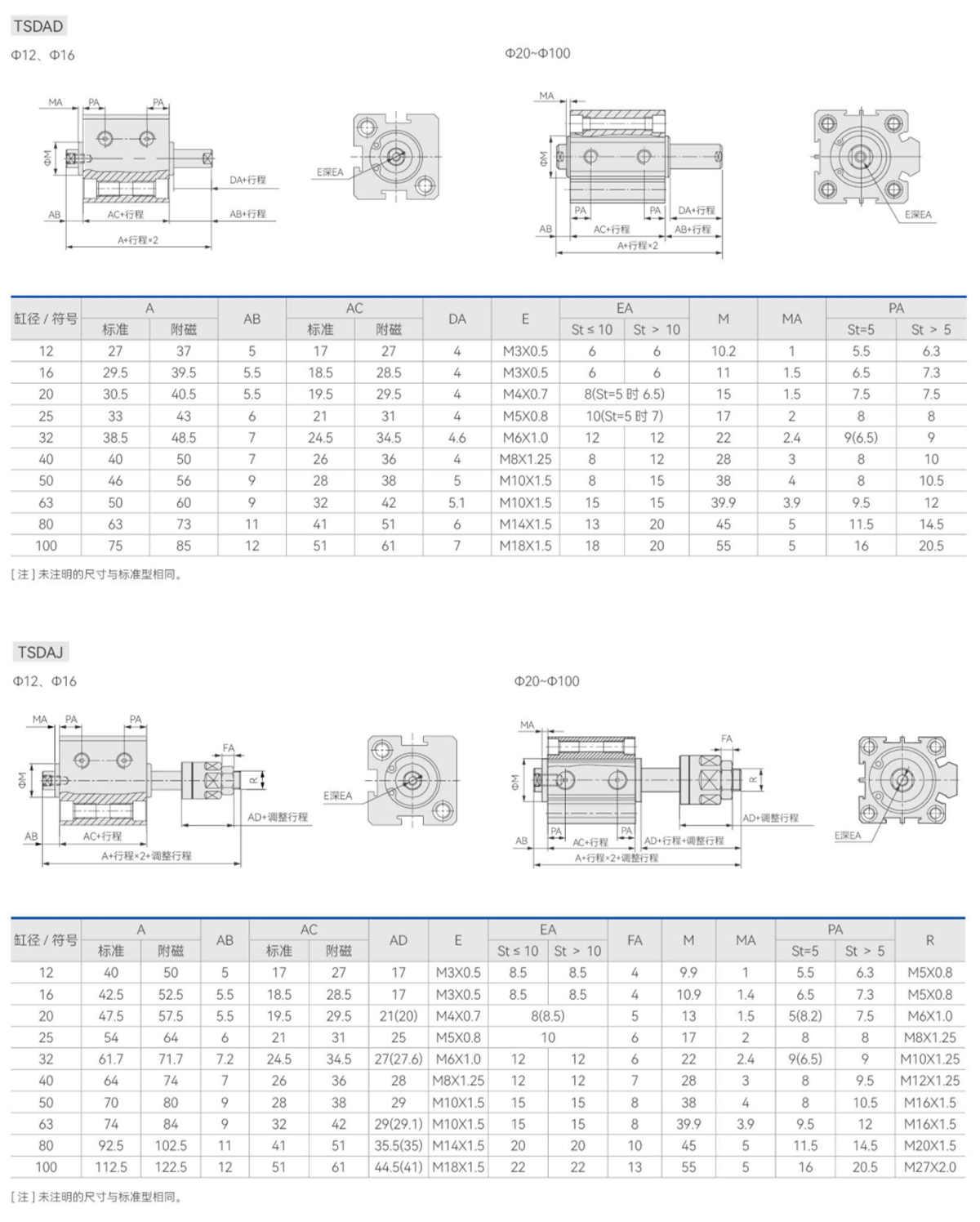 TSDA 시리즈 슬림 실린더