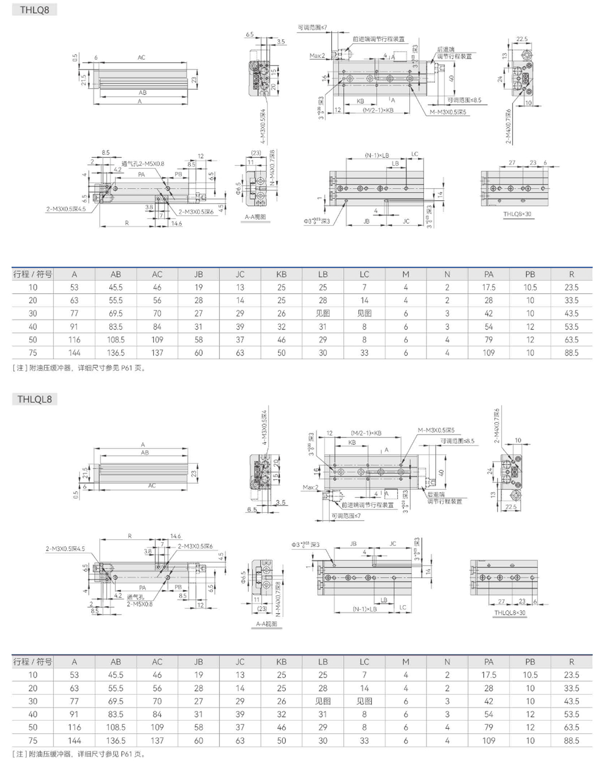THLQ, THLQL 시리즈 2축 정밀 슬라이더 실린더(순환 롤러)