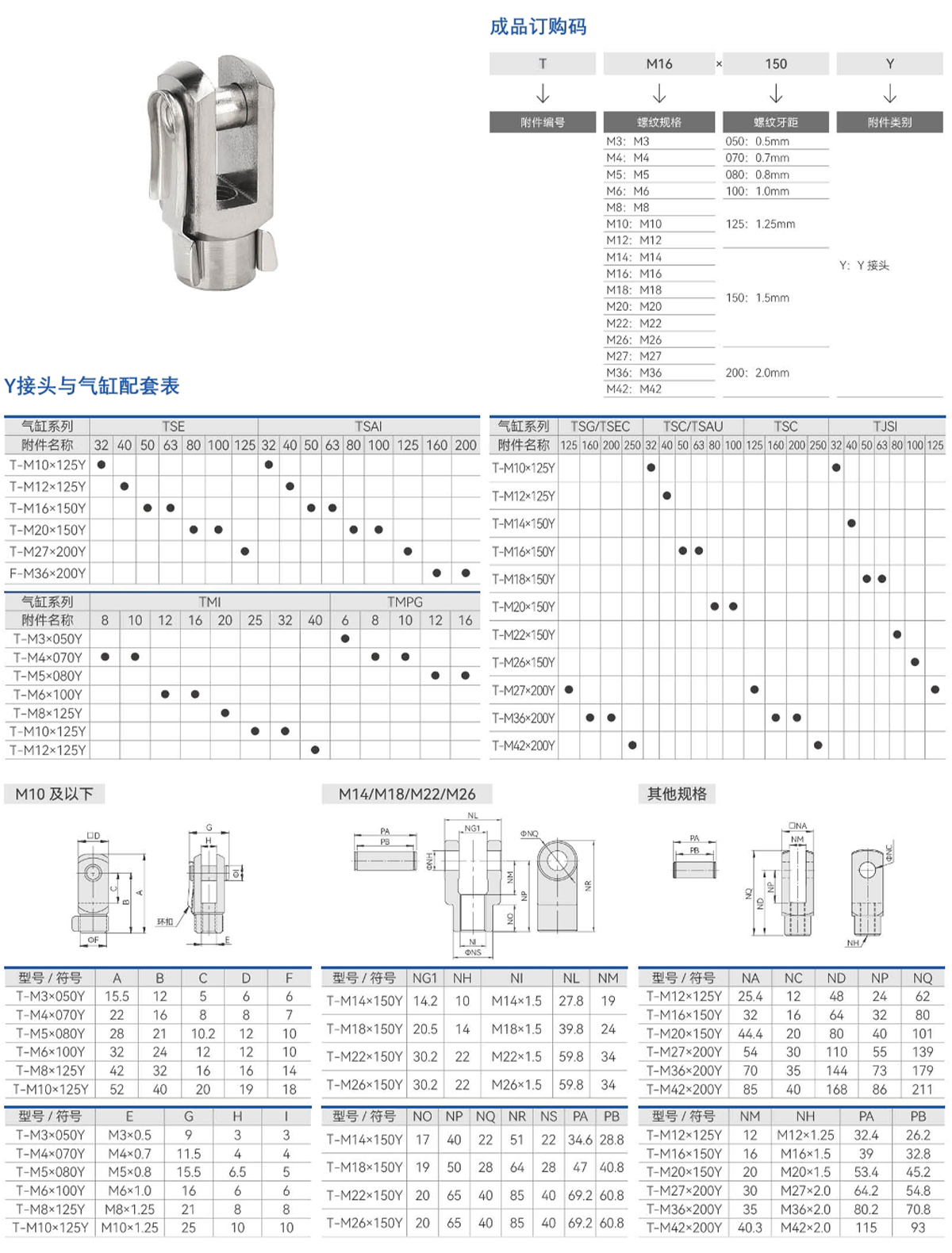 공기압 피스톤 막대 끝 링크 액세서리 - Y 커넥터